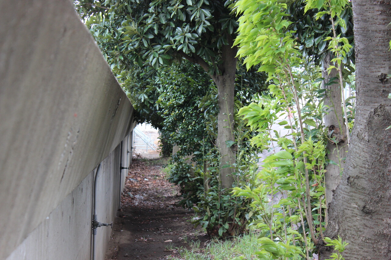 遊歩道のつきあたり、野球練習場の裏手です