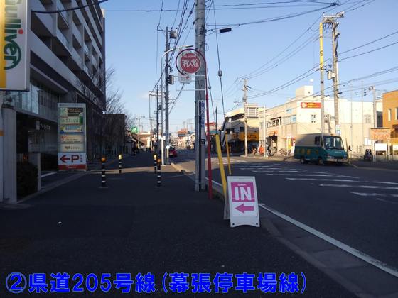 片側3車線の大動脈である現在の千葉街道からスタートします。青看の幕張駅方面にはきちんと県道205号の案内がありました。