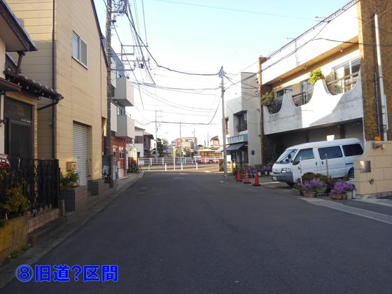 この通り抜け不可な道ですが、地図上で見るとその先の別の(子守神社を抜け、湾曲して再び旧14号に出ている)道の一部であったと推理できます。県道に指定されている事を考えると、千葉街道の旧旧道であったのではないかと考えています。
