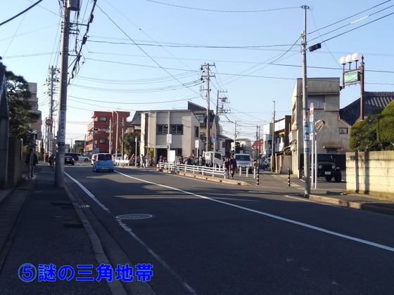 県道57号線の幕張町4丁目交差点付近まで来ると、例の三角地帯が見えてきました。