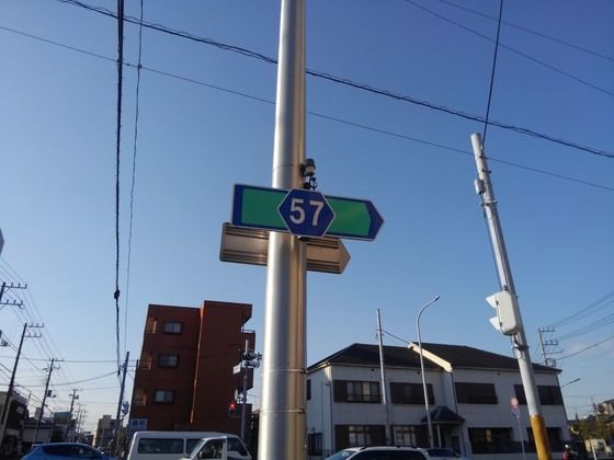 とりあえず幕張町4丁目交差点へ出て来ました。直進・右折方向がそれぞれ県道57号線、左折方向が14号方面となっています。