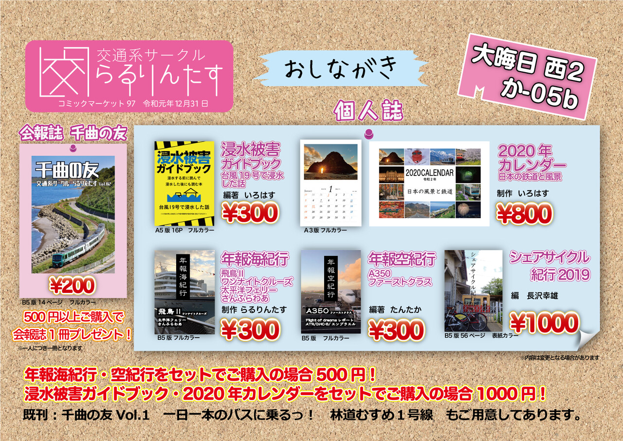 コミケ出展を機にサークルとしての会報誌を創刊します。直前までどたばた作りましたが、なぜか各交通ジャンルそろっています。
