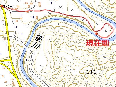 集落から完全に離れ、林の中を進むと眼下に笹川が見えてきました。